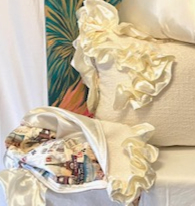 White Satin and Chenille Pillow Cover with Ruffles – A Luxury Accent Piece from Ms. Yauve's Studio